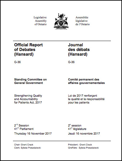 Standing Committee on General Government – Bill 160, Strengthening Quality and Accountability for Patients Act, 2017
